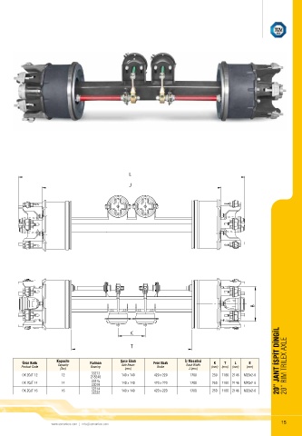 Ürün Kodu Kapasite Rulman Şase Ebatı Fren Ebatı İz Mesafesi K T L B 20” JANT İSPİT DİNGİL