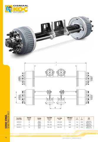 DORSE DİNGİL SEMI-TRAILER AXLE Product Code Kapasite Rulman Şase Ebatı Fren Ebatı İz Mesafesi (mm) (mm) M22x1,5-10