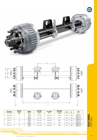 Product Code Capacity Bearing Axle Beam Brake Track Width (mm) (mm) (mm)