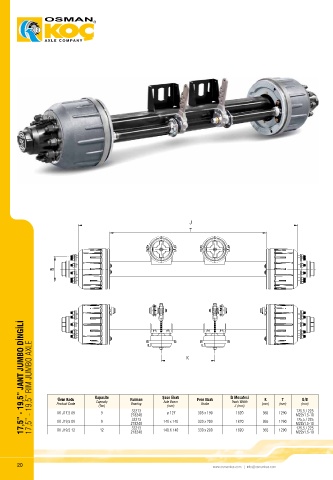Ürün Kodu Kapasite Rulman Şase Ebatı Fren Ebatı İz Mesafesi K T G/B