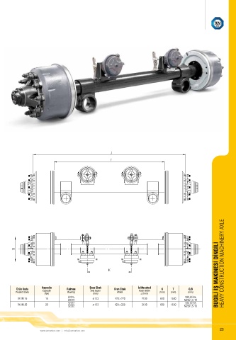 Ürün Kodu Kapasite Rulman Şase Ebatı Fren Ebatı İz Mesafesi K T G/B BUGİLİ İŞ MAKİNESİ DİNGİLİ HEAVY CONSTRUCTION MACHINERY AXLE
